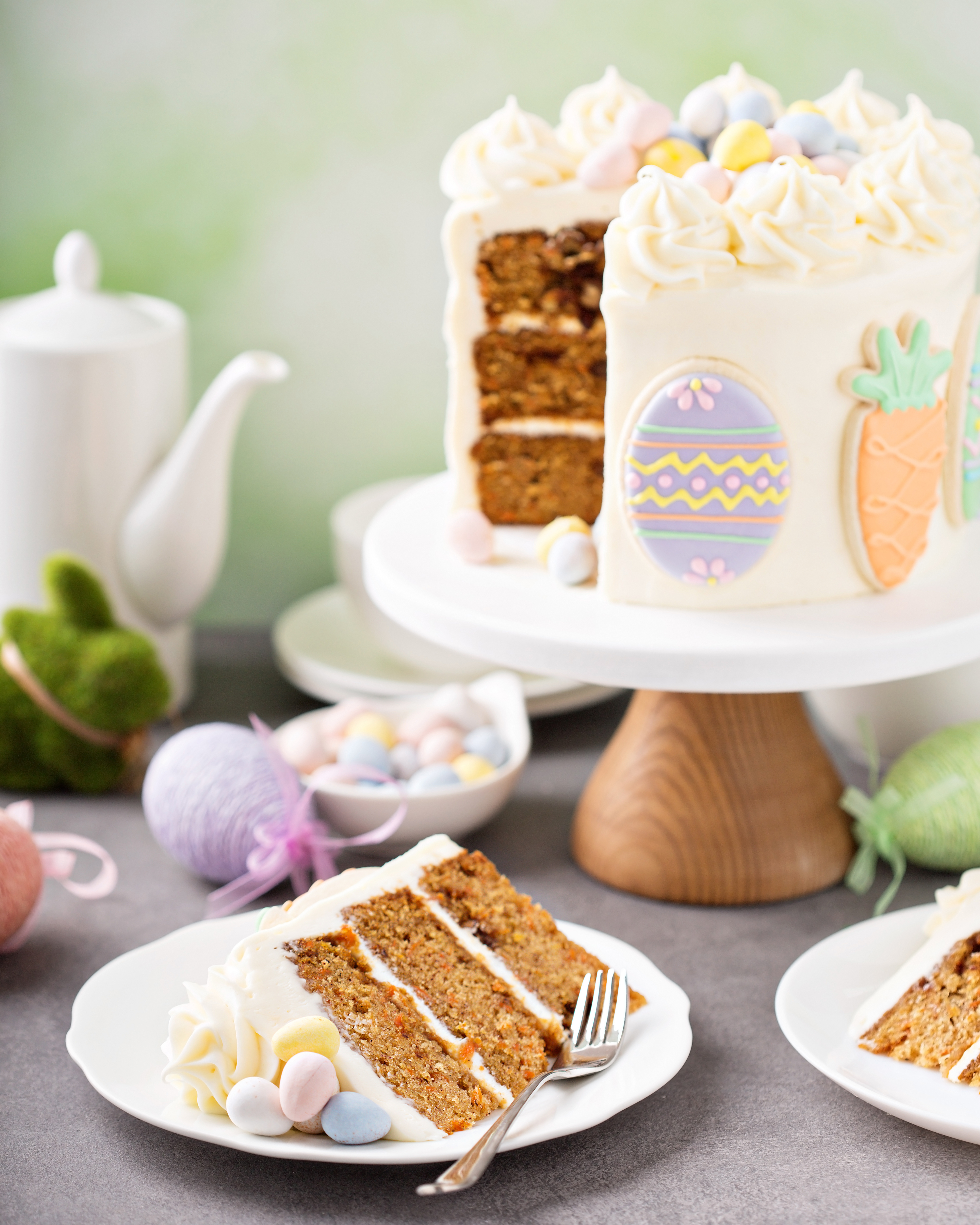 Moist, dense, rich, and spicy! What’s not to love? Make this carrot cake recipe anytime, but remember to make it extra special for Easter. Add some crushed nuts around the cake for decoration, or add a wow factor with Easter cookies, attaching with extra frosting.