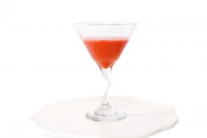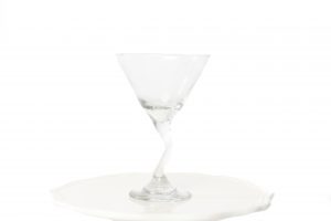 1) Spray the martini glass with Pam or brush with cake release.