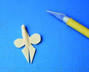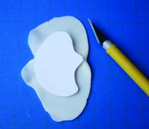 1. Roll out a small piece of white gum paste onto the CelBoard, then cut the top sepal using the top sepal template.