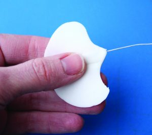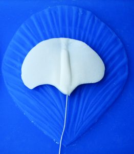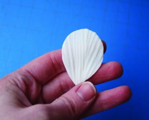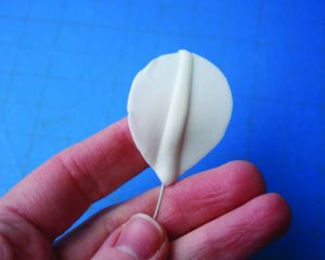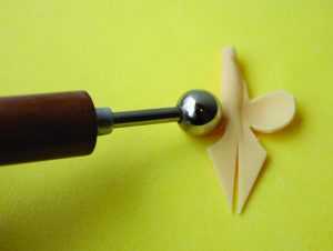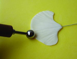 3. Vein the sepal and thin out the edges with a ball tool on a CelPad. Allow the petal to dry on the apple tray, face side up.