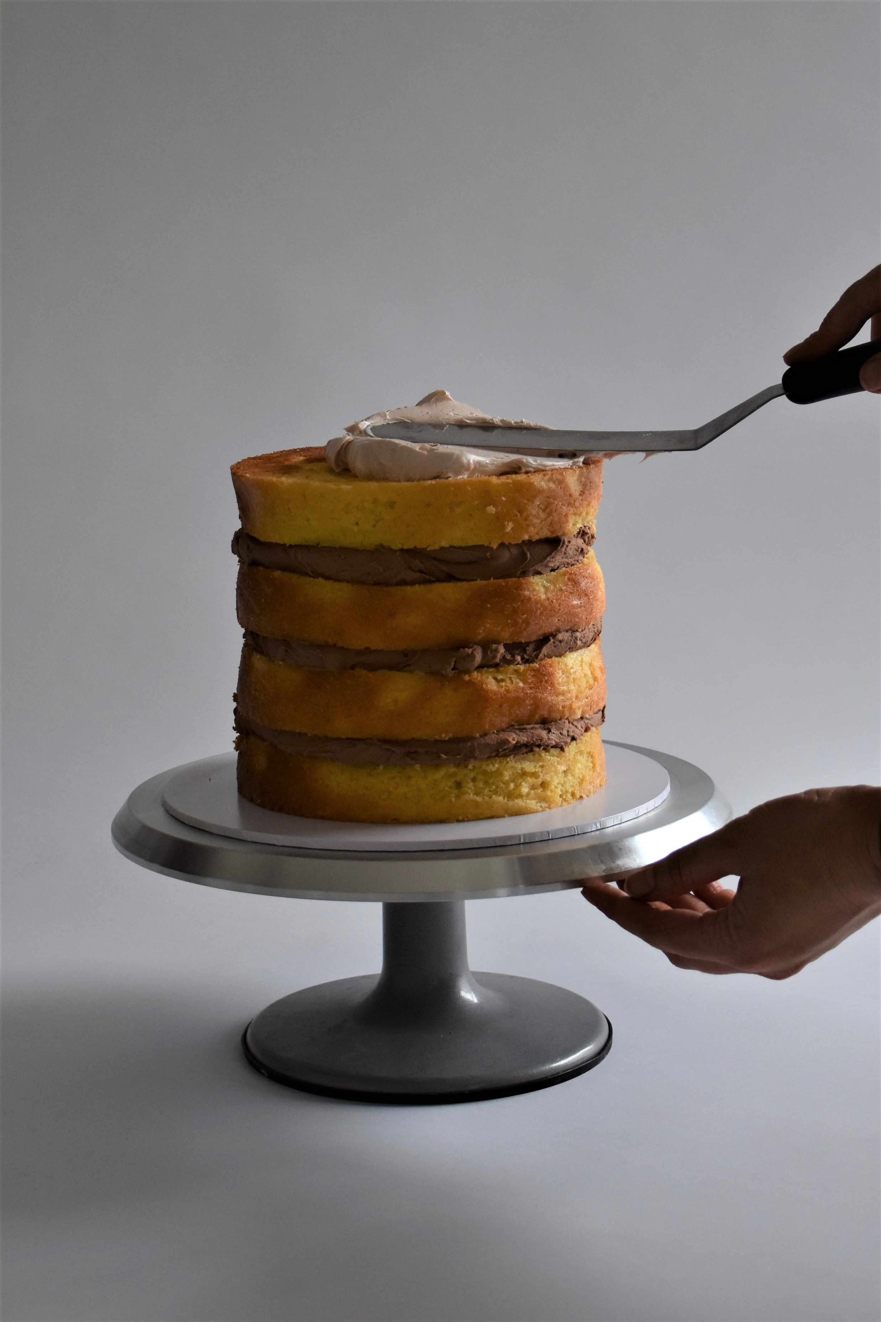 - Pre-prepare your cake. Level, fill, and leave it either overnight or in the fridge for a couple of hours to set.