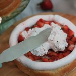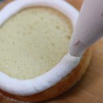 - Fill a piping bag fitted with a coupler with the prepared Whip’n Ice. Pipe a barrier around the edge of the cake layer to keep the strawberries from sliding out.