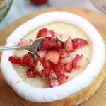- Spoon some of the strawberry and basil mixture onto the layer, making sure to allow some of the juice to absorb into the cake.