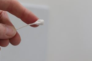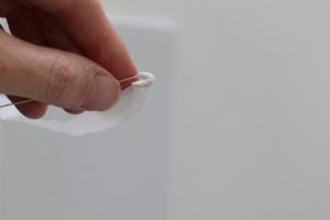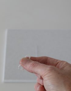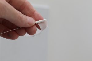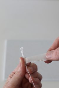 Wrap some tape a few times around the end of a 10 cm piece of 28-gauge wire. Fold the end over a bit to make a hook and keep wrapping the tape around to create a kind of ball/cone.