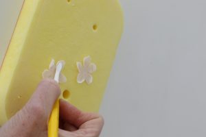 Zoe notes: You will need to place the base of the flower into the hole of the foam pad to do this.