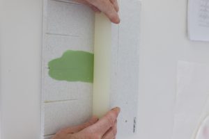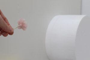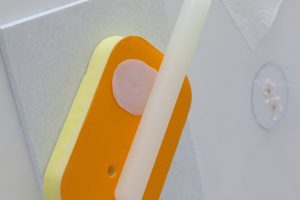 Smear a little shortening over the medium sized hole of the firm side of the CelPad (alternatively, you could use the largest hole on a CelBoard). Place a small amount of the medium pink gum paste over the hole, dust with a little cornstarch and roll it out to around 1 mm — until you can see the paste in the hole coming through. Remove the paste from the CelPad. Flip it over and use a CelPin to thin out the paste a little more.