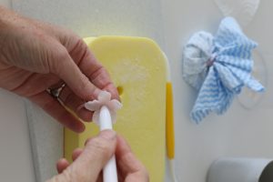 Cut out the petals using the smallest size blossom cutter. As before, use the Dresden tool to thin and shape the edges.