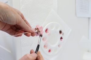 Dust the flowers using the various tones of pink, making the outer layers slightly darker than the inner.